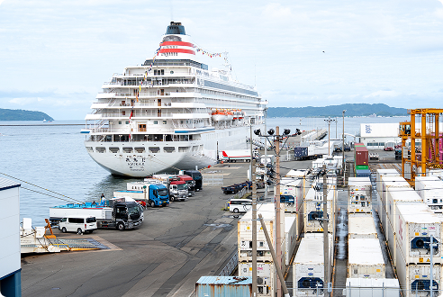 関門海峡を航行するクルーズ客船「飛鳥U」